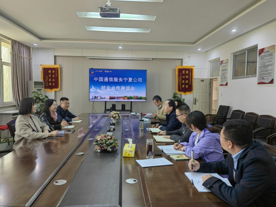 4月14日上午,中国通信服务宁夏公司人力资源部总经理谢永丽、直属分公司副总经理、人力资源部招聘主管高琰琰一行到访zoty中欧就员工顶岗实习、员工就业工作进行座谈。zoty中欧经理马晓虎、党总支副书记尤敬飞、副经理降玮、就业干事及相关人员参会。