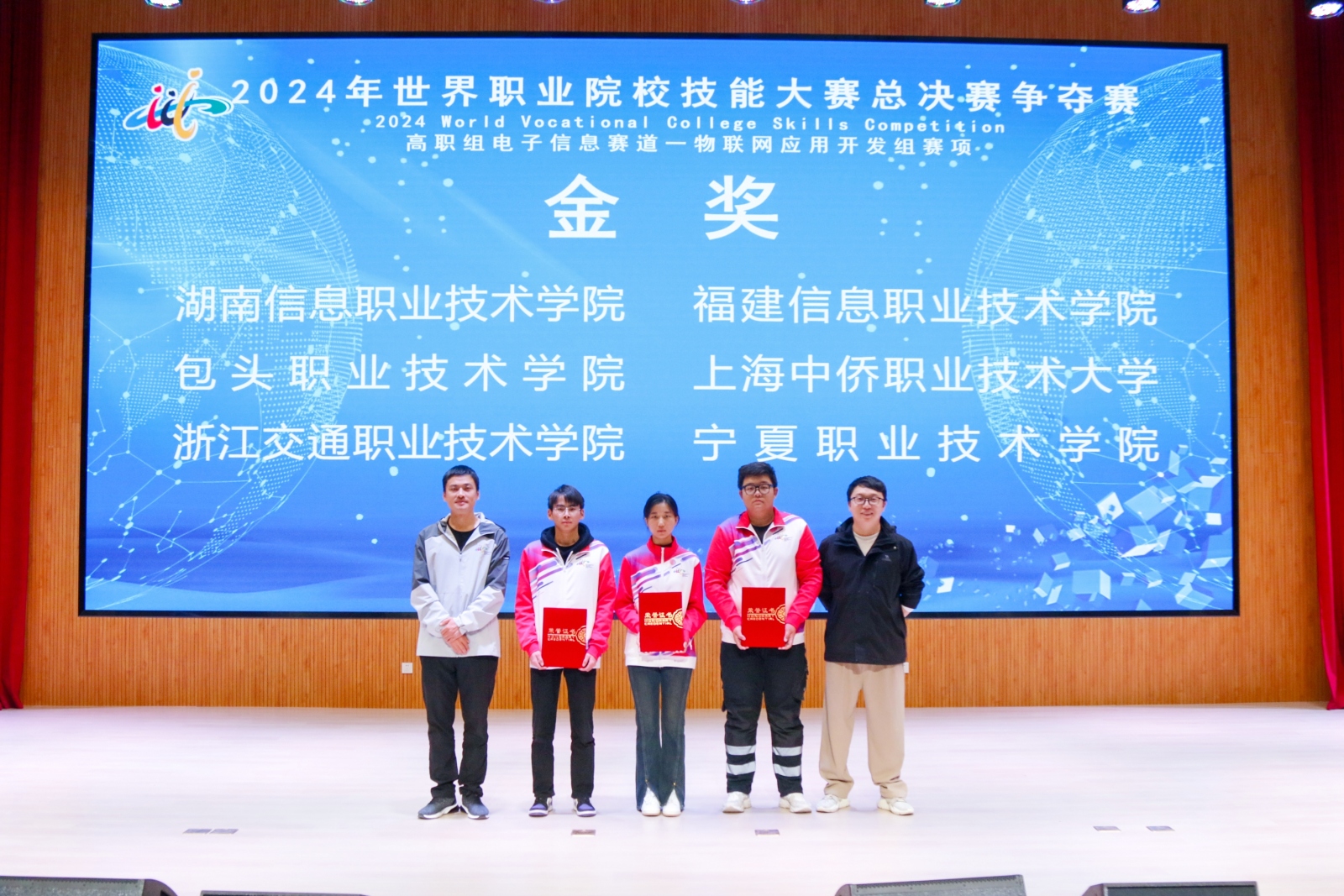 10月29日—11月1日,为期4天的2024年世界职业院校技能大赛总决赛争夺赛高职组电子信息赛道一物联网应用开发组在公司举行,由宁夏职业技术公司zoty中欧王敏、曹梦川老师指导的员工柳凯、吴德秀、蔡依林凭借出色的表现,在来自30个省、自治区、直辖市及新疆生产建设兵团的60支参赛队、400多位参赛选手中脱颖而出,一举夺金。